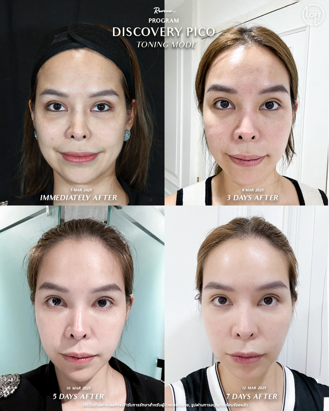 “ไปทำโปรแกรม Discovery Pico ที่ The Loft Clinic มาค่ะ ก่อนทำคุณหมอให้คำปรึกษาละเอียดและทายาชาจนไม่รู้สึกเจ็บเลย หลังทำหน้าไม่แดง ไม่ลอก ผิวดูใสขึ้นทันที รอยดำเล็ก ๆ และฝ้าแดดจางลง เห็นผลชัดโดยไม่ต้องพักฟื้น แต่งหน้าเบาๆ ได้ตั้งแต่วันรุ่งขึ้น สบายมากค่ะ ใครมีปัญหาฝ้าแดดหรือรอยสิวจุกจิก แนะนำเลยค่ะ”